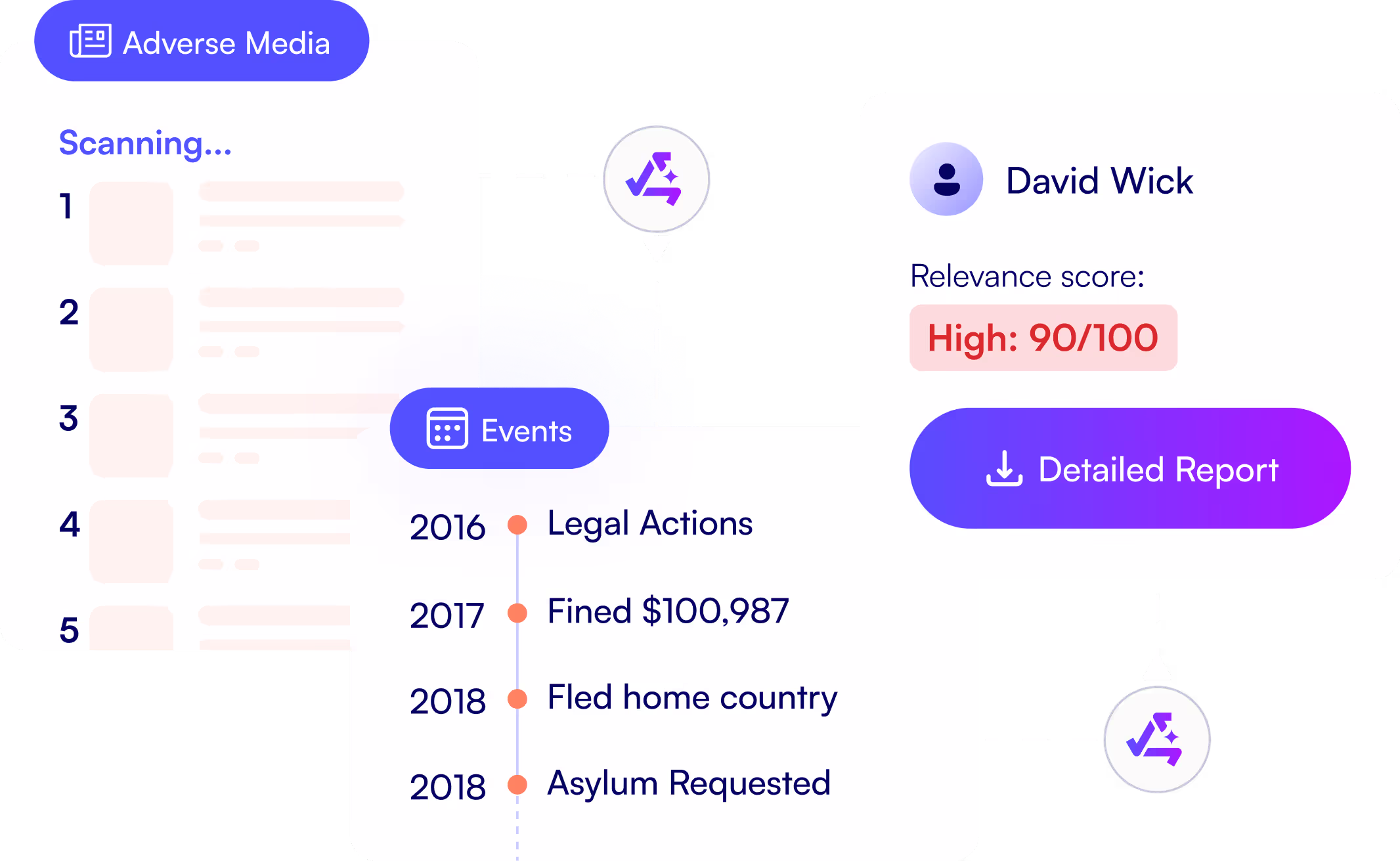 - Type of hit (Adverse Media, Sanctions, Watchlist)