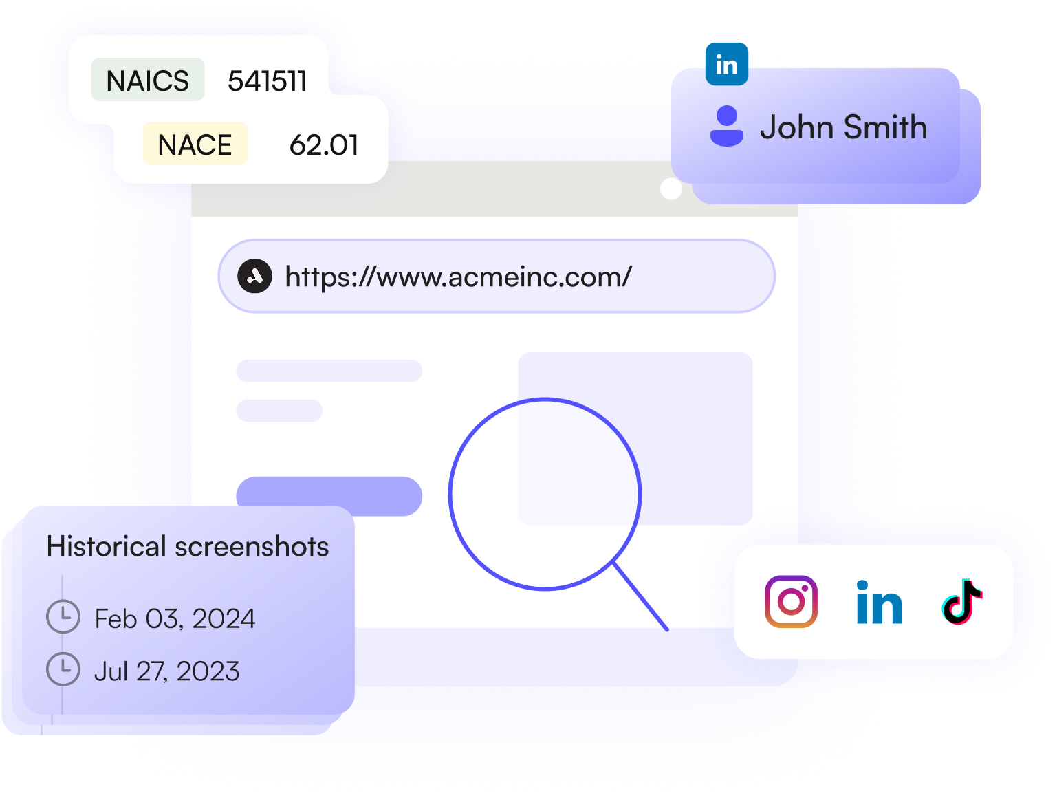 - Categorizes the business using NAICS, MCC, and SIC codes.